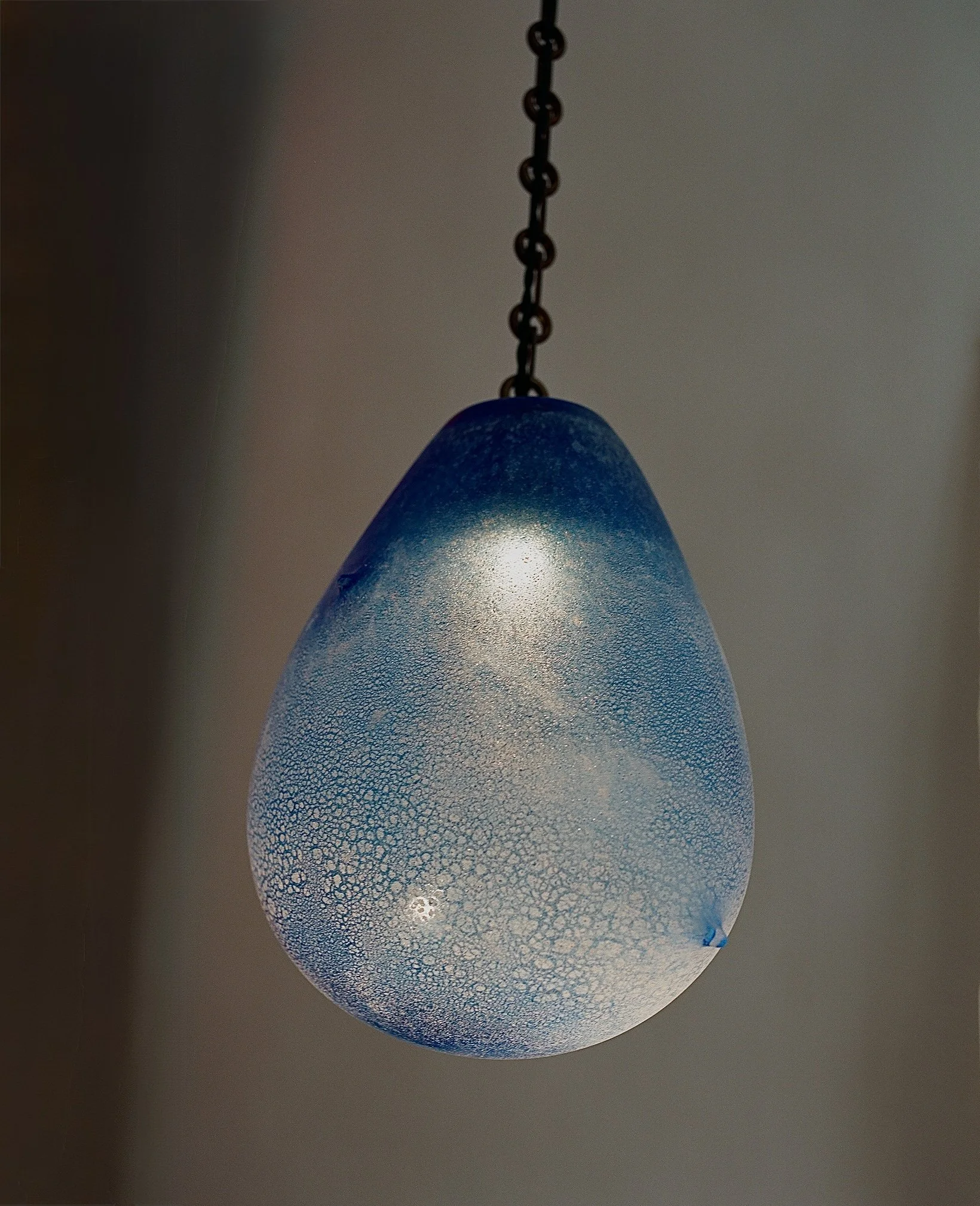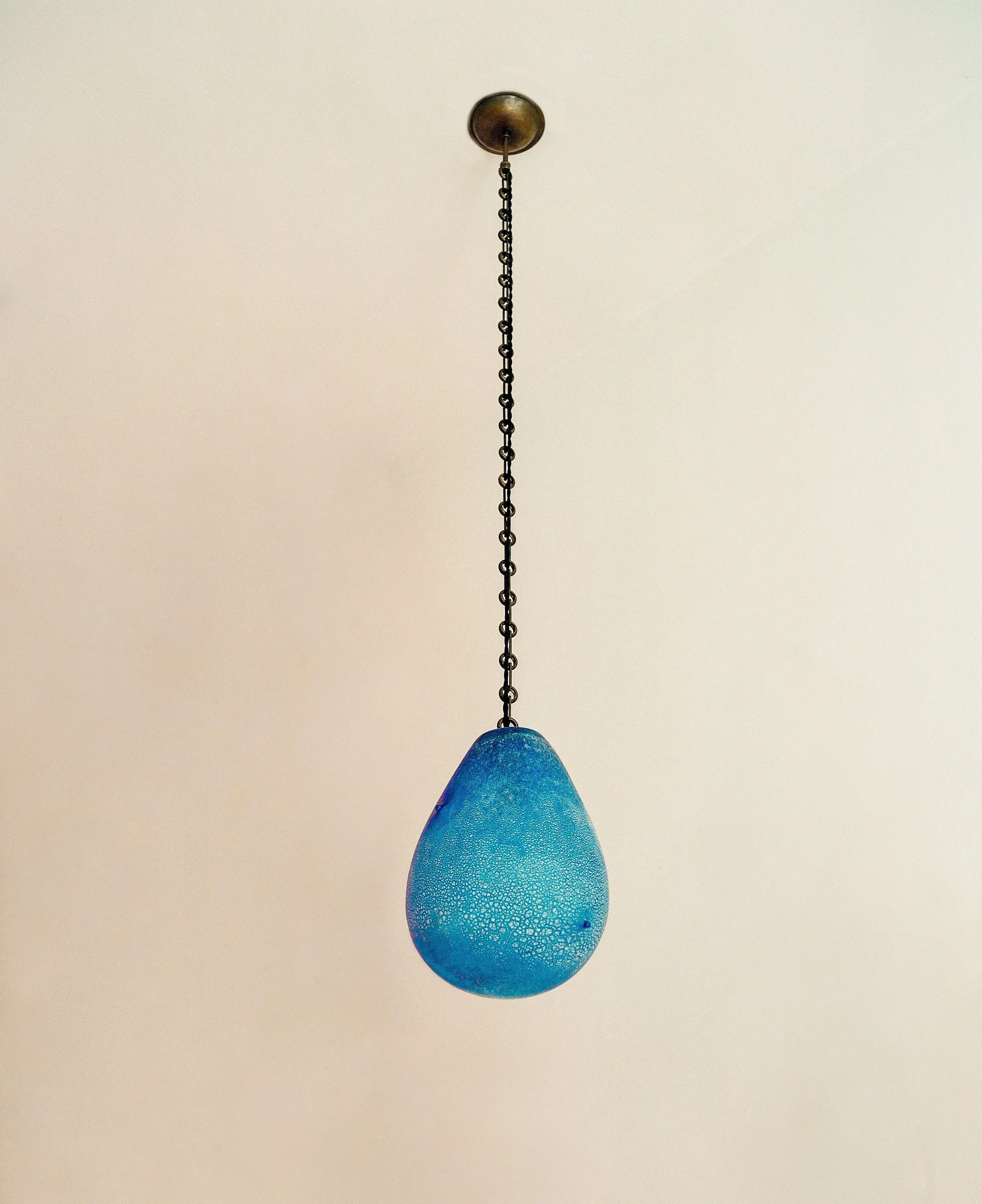 Materials: Hand-blown glass in custom Scavo patina in Midnight Blue gradient, Antiqued Bronze chain