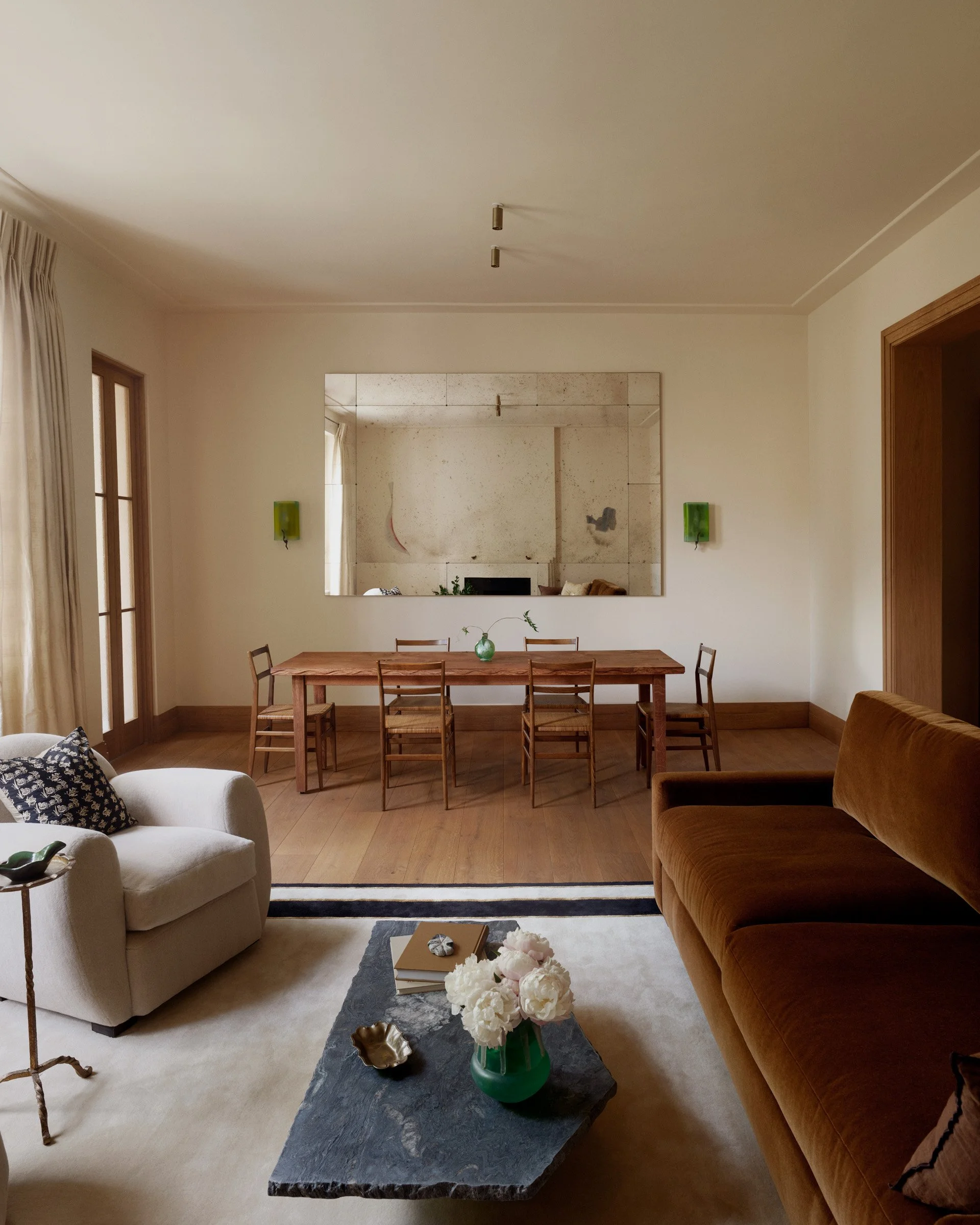 For Joe Spiro’s London apartment, Studio Valerie Name crafted a calm, light-filled refuge that stands in deliberate contrast to the jeweler’s maximalist world. Rooted in warm minimalism, the space unfolds through careful architectural interventions, tactile materials, and bespoke collaborations - from sculptural wood furniture to hand-forged bronze details inspired by Spiro’s jewelry.
